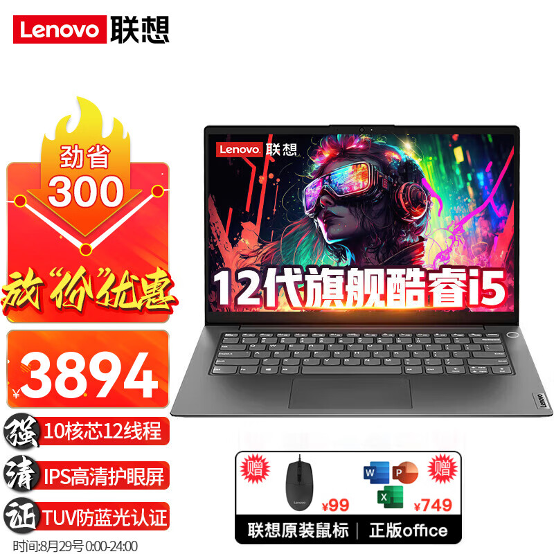 联想笔记本电脑高性能12代酷睿i5超轻薄本v14英寸Air学生商用办公设计游戏本手提本 十核芯 i5-1235U 16G内存+1TB固态 游戏级锐炬Xe显卡 IPS全高清屏 精装升级价格:4194.00元!