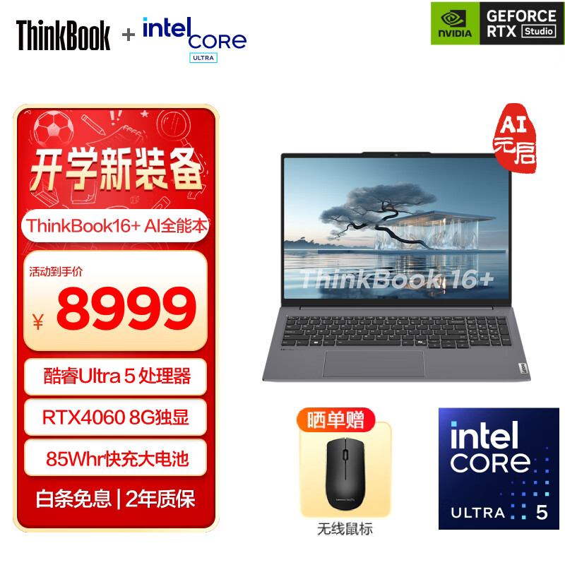 ThinkPad联想ThinkBook16+2024 AI全能本 全新英特尔酷睿Ultra标压处理器 16英寸轻薄学生办公笔记本电脑 Ultra5 125H 32G 1T 0JCD独显价格:8999.00元!