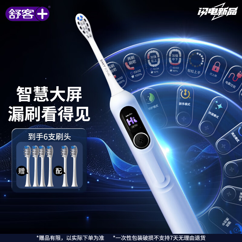 舒客1级清洁情侣电动牙刷智能换区成人/学生送男友/女友180天续航软毛护龈 七夕情人节礼物G5pro冰川蓝价格:299.00元!