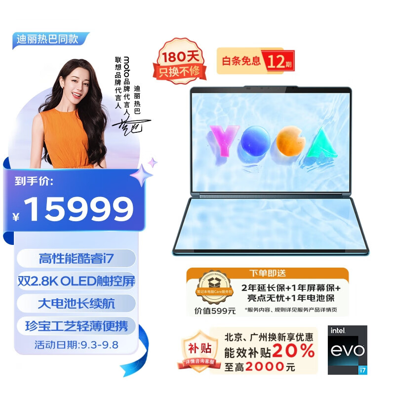 联想笔记本电脑YOGA Book 9i双屏翻转触控 高性能酷睿i7 13.3英寸轻薄本16G 1T 2.8K OLED 键盘笔支架价格:15999.00元!